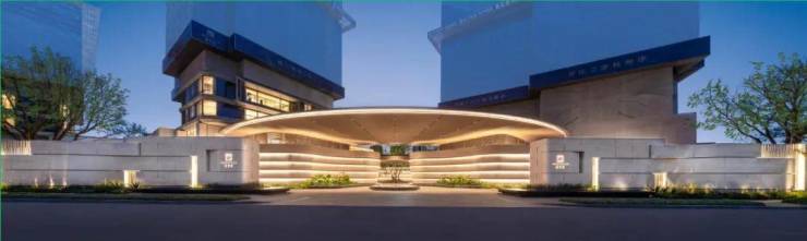 【“沧浪华盖”仪式大门】:汲取华盖灵感,打造26米宽幅仪式大门,铺以近千方月光米黄石材,冠盖钱塘。