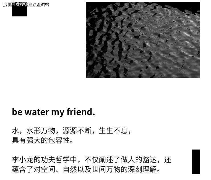 此外,通过跌水、涌泉和镜面水景等水景组合,将内部水景与外部水岸紧密相连,