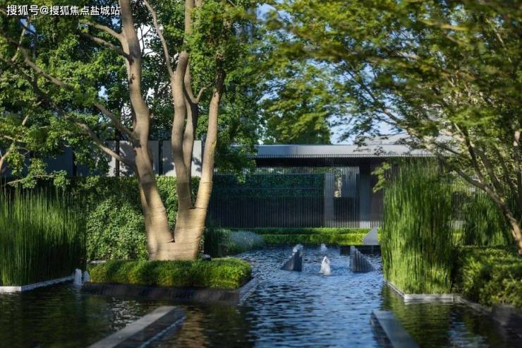 来到四进艺术庭院,随着水纹的波动前行,抵达不同主题的私享庭院。茂盛的绿植与水景交织,沿途归家之路更添趣味。