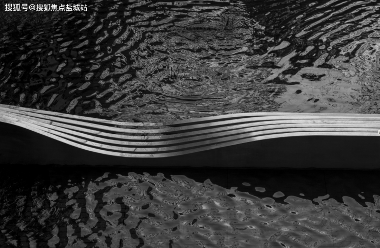 波浪形元素在项目中无处不在,主次入口及艺术庭院的波浪形的雕塑,还有下沉式庭院的波浪形景观。