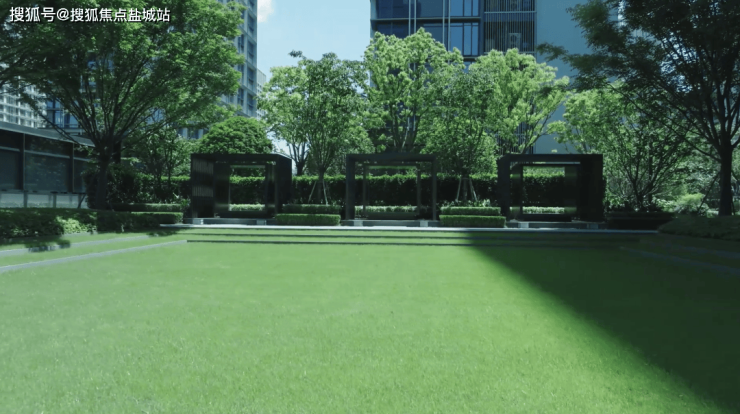 项目的一大特点是奢华尺度庭院草坪,绿化面积约 3.4 万㎡,其中集中绿地约 1.3 万㎡,总体景观面积约 6 万㎡,集中草坪面积约 2 千㎡。
