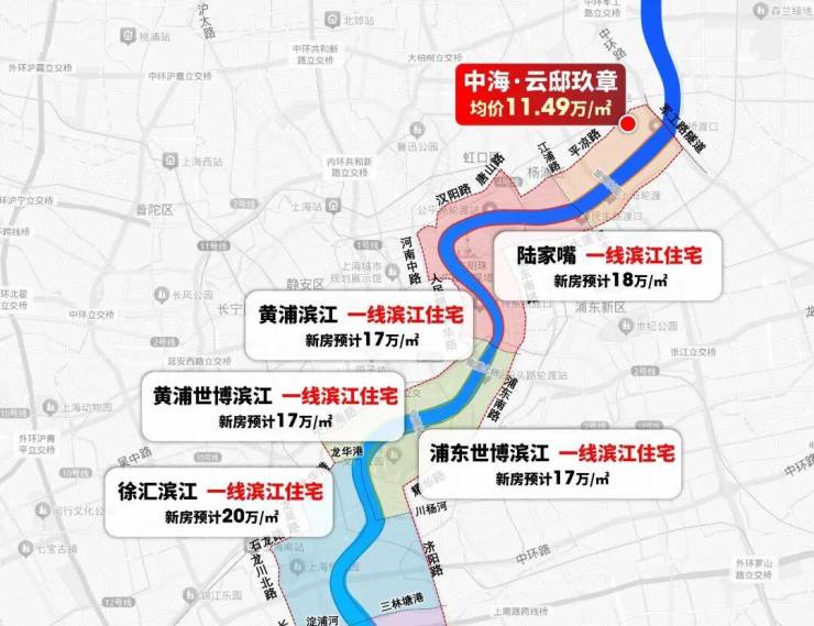 海的滨江概念盘很多。但仔细数数,但凡贴着江边,几分钟就能走到的项目,就那么几个,价格还都要高出一大截。项目价格暂时尚未有过多披露,但参考上海今年土拍溢价行情,笔者个人猜测项目未来售价极有可能达到15万+!