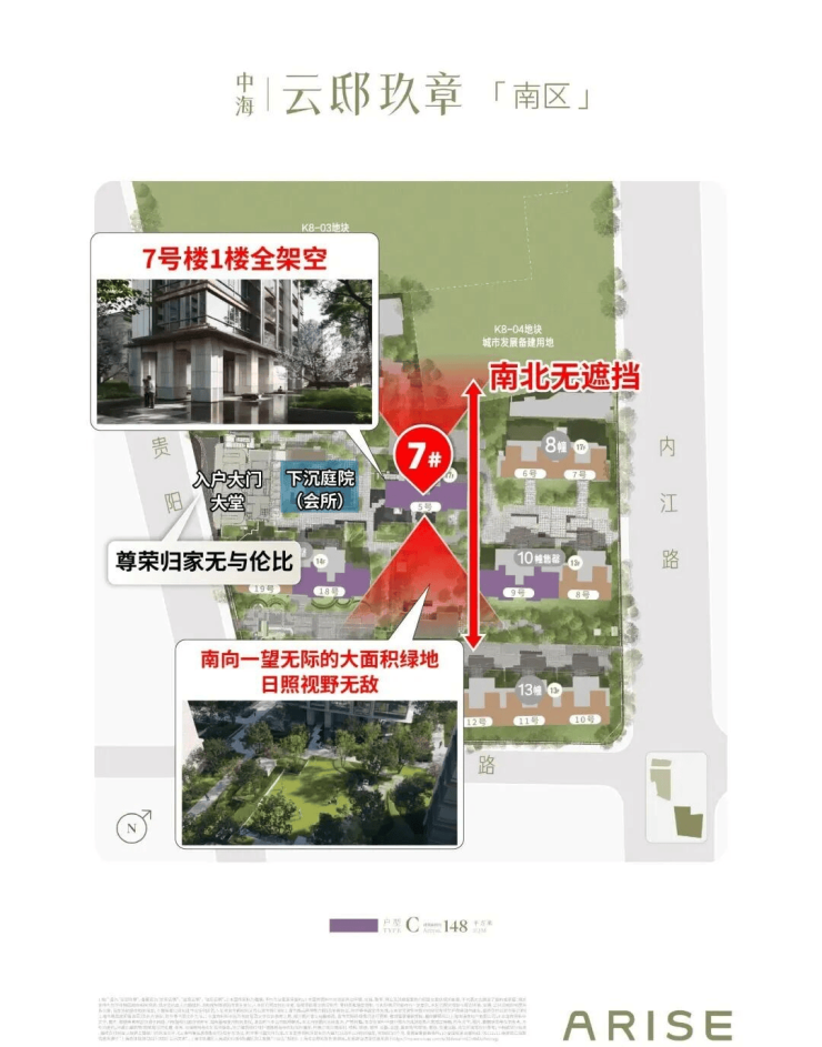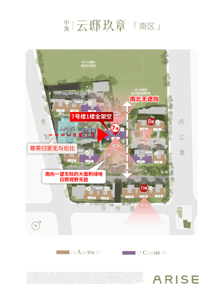 仔细看西边这条动线,从进小区到进大门,纵览项目所有精华社区配置,来访客人必然惊叹其品质,这一条无比尊崇的归家路线当真是楼王专属!