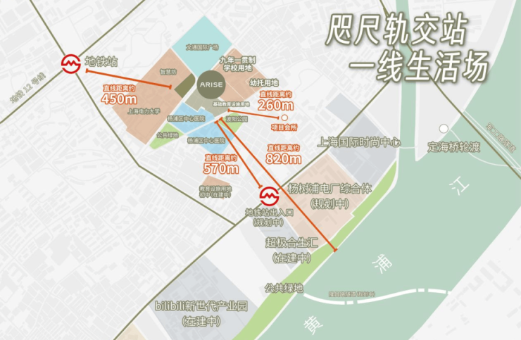 中海·云邸玖章距离江岸直线距离仅约500m,作为当下片区内离江最近的项目,享美团、B站、超级合生汇等地标综合体配套,杨浦滨江生活中心。