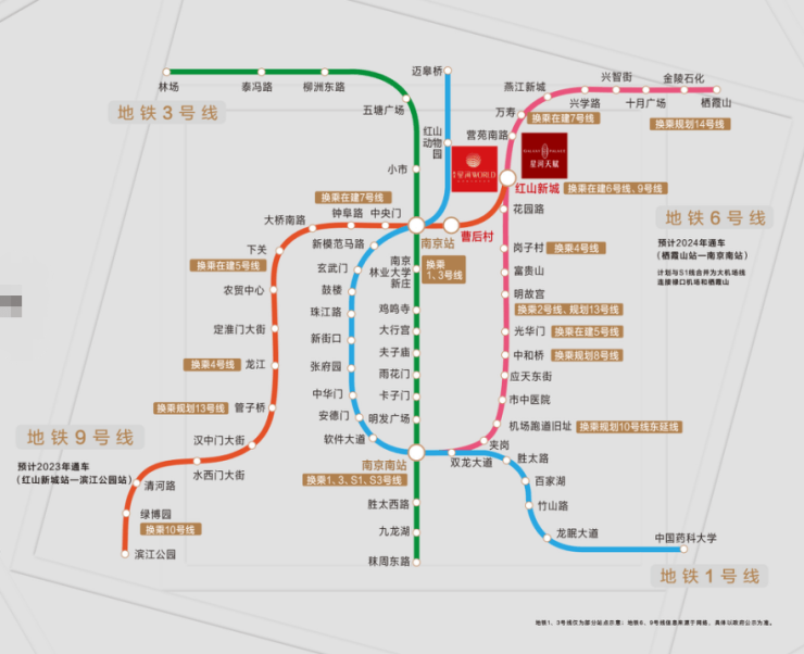 6/9号线“红山新城站”(在建)上盖,近邻地铁1/3号线 ,四轨三道双枢纽,交通路网,链接一城繁华 。
