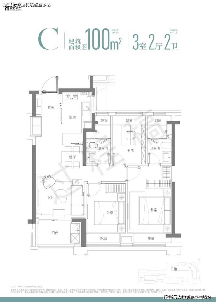 项目高层产品均为100㎡左右3房户型,一梯6户: