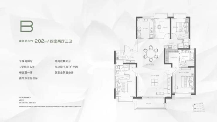 而三期加推的房源更是让人期待不已。它由2栋高层、1栋16层和13栋约10-12层的小高层组成,形成了一个难得的滨江低密品质住区。这里的面积选择丰富,从约191㎡到330㎡的4-5房应有尽有,而目前在售的则是约202㎡和253㎡的4房户型。这些房源不仅设计考究,更拥有3.3-3.5米的主力层高,私享“独立电梯厅”设计,精工品质与国际一线品牌精装,以及四重精装大堂等豪华配置,无疑是上海品质住宅的佼佼者。