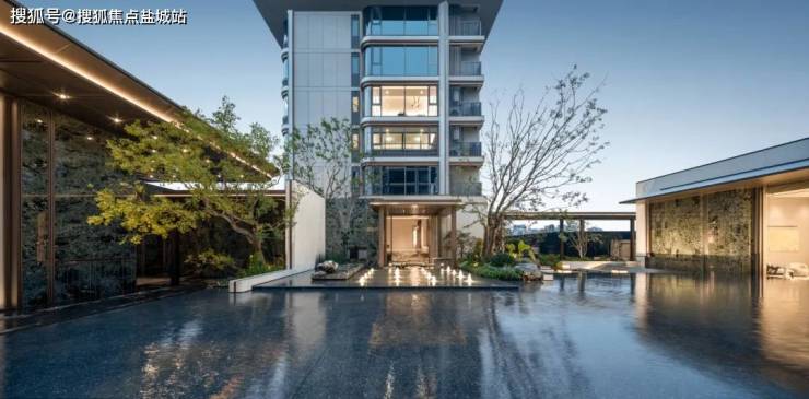 以约70米进深北塘河滨水公园为天然幕布,项目打造了内外双园无界融合的度假式景观。