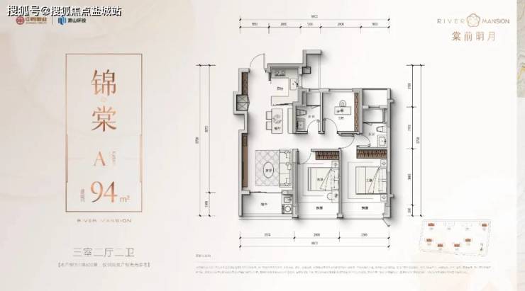 建面约94㎡三房,三开间朝南 + 1.5米进深阳台,玄关“深U空间”可嵌入双开门冰箱,小户型也能实现极致收纳;