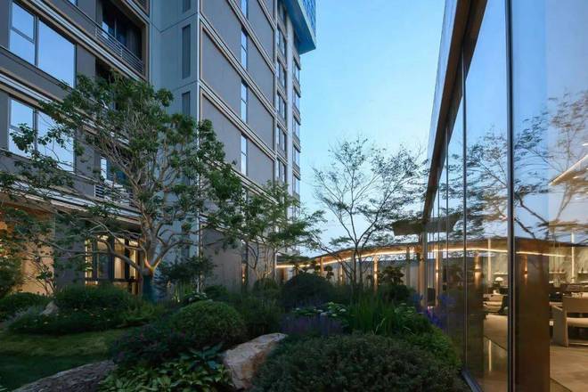 项目不惜成本打造丽思卡尔顿酒店同款果岭式立体堆坡,高落差的堆坡式造景,勾勒更加丰富的视觉层次与审美体验。