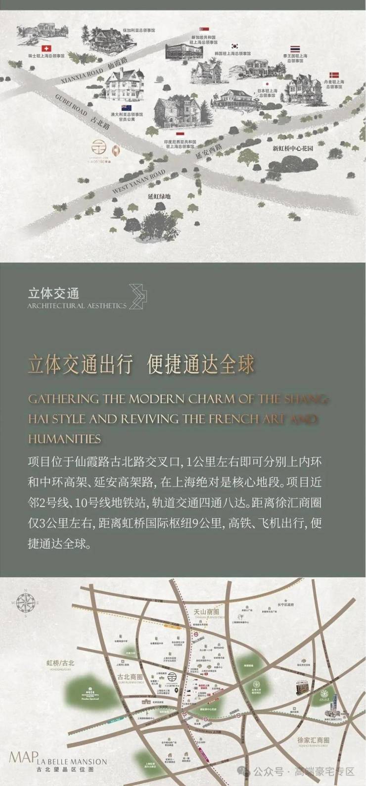 古北望晶的地理位置得天独厚,不仅处于上海的重要交通节点上,更享受着周边醇熟的配套设施所带来的便利与舒适。这里汇聚了国际商业、文化、教育和医疗资源,形成了一个集高端住宅、商务办公、休闲购物、国际交流于一体的综合性国际社区。
