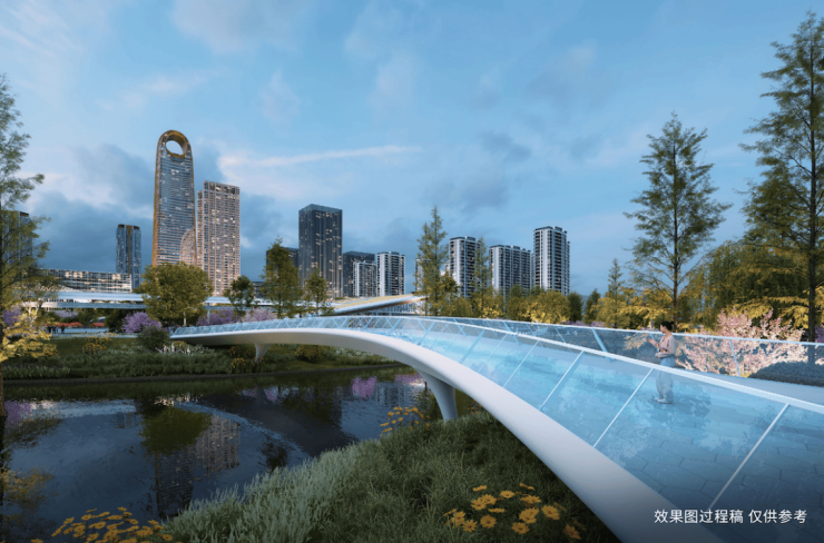 约24公顷四期“中央绿谷”获批复,设计环绕水系、亲水平台、多组团阳光草坪等自然空间。