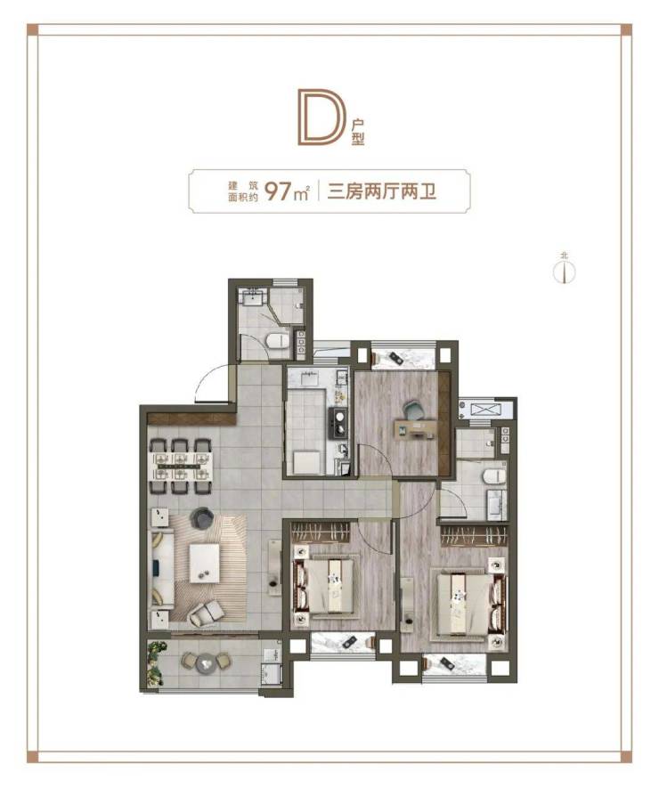 实话讲现在的户型都大同小异,户型图一贴您自己也能看得懂。但项目这个建面约97㎡3房只有去现场体会,才知道它的好。