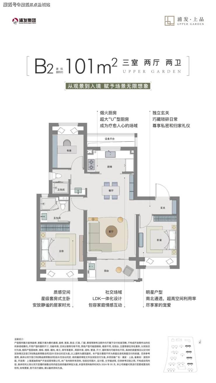 浦发上品目前在售建面约92-101-129㎡3-4房,4种全功能户型。