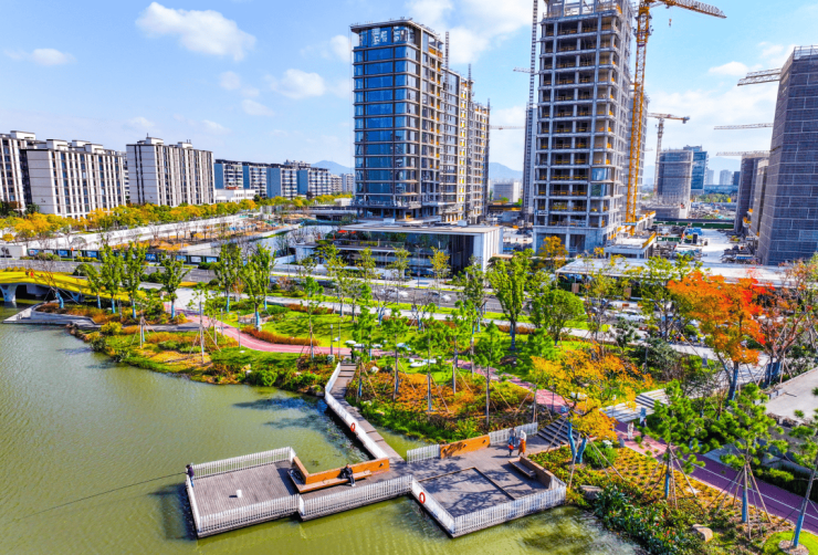 在宁波,一线临江的景观已属难得,而主城一线临湖更是珍稀无比。