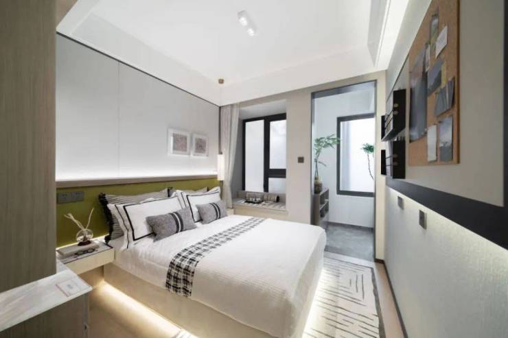 深安上居规划有12幢现代美学风格的建筑,玻璃幕墙搭配米白色和深灰色材质涂装,简约线条分割完善挺拔向上的平面美学。
