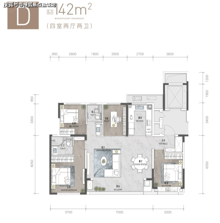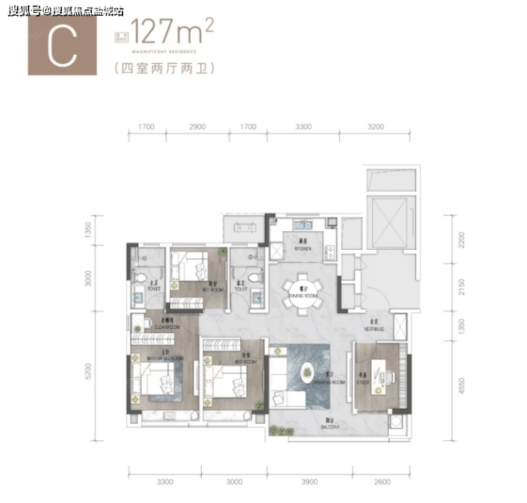 125㎡四室户型采用“LDKB一体化”设计,四叶草布局,卧室之间互不打扰,更加私密,主卧套房配置独立衣帽间及卫浴,精装品牌含科勒、方太等,对标中高端改善需求。