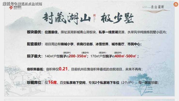 容积率最低:容积率仅0.21,目前杭州在售容积率最低的合院项目,未来不再有;