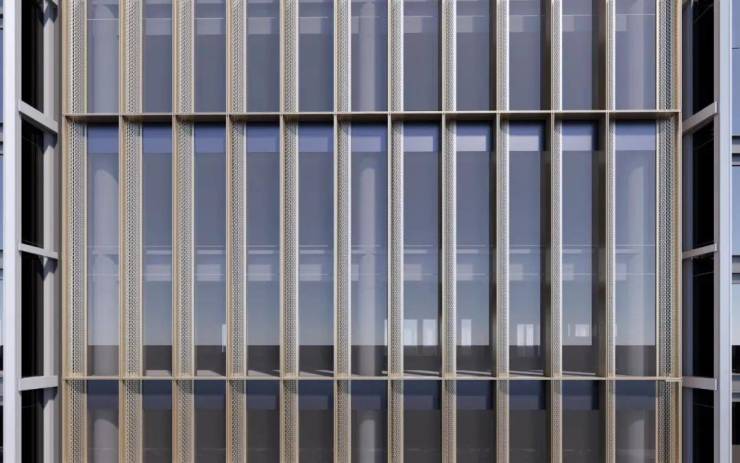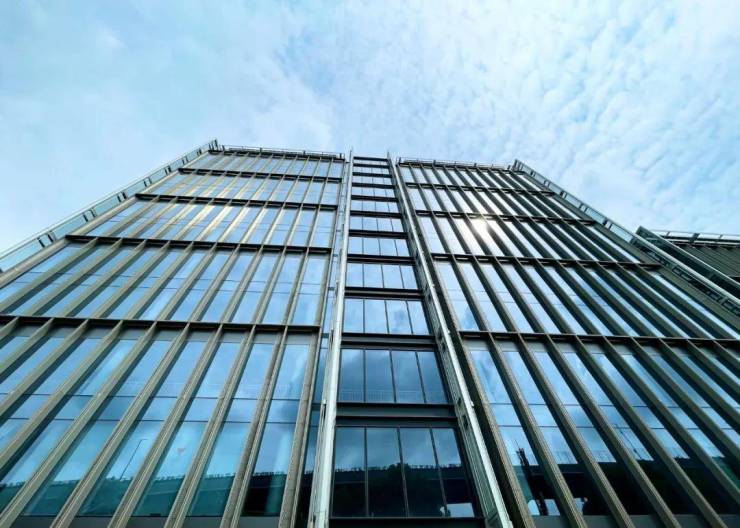 立面为中空Low-E玻璃幕墙+铝板幕墙系统,灵动的竖向线条与“风帆”意象穿孔铝板,呼应运河文脉,塑造鲜明企业形象。