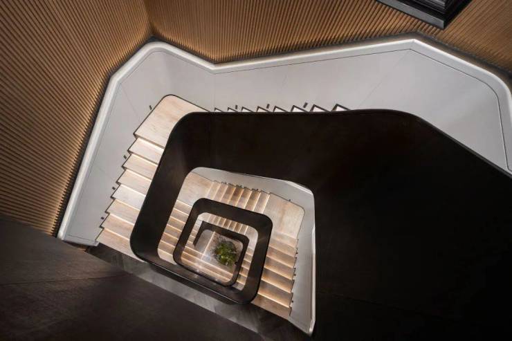 其次,它还是一道家人高频互动的“情感传送门”。透过中庭,在楼上茶室喝茶的先生,低头就能看到楼下练瑜伽的太太、在廊道奔跑的孩子。