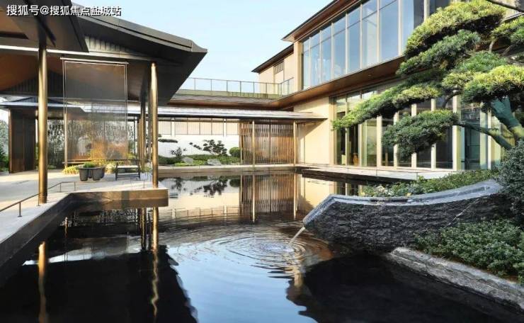你看,坡顶飞檐、阶梯入门、青松绿植、格栅围墙……高门大户般的门头,流转着东方气韵,再现风雅之境。