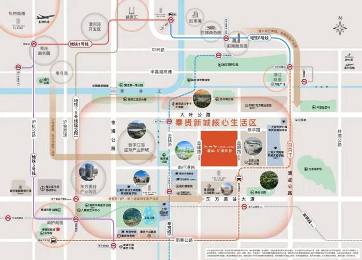 商业方面:直线距离约70米龙湖上海金汇天街、毗邻约3万方天和地块商业(规划中),约6公里范围内龙湖上海奉贤天街、南桥百联中心,万象潮流尽归步履之间。