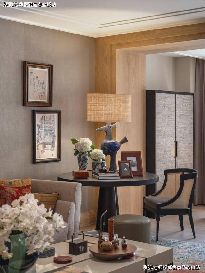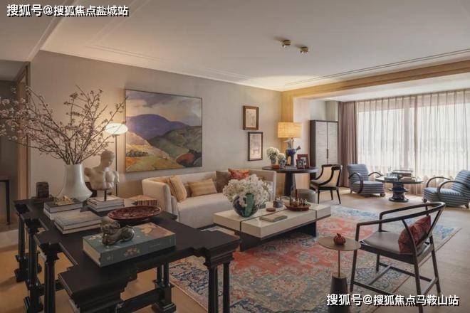 客厅,也是一处流动的空间,通过“自由灵活的组合”营造不拘束的社交空间,家具摆放,连而不挡,分而不隔。满目吸睛的艺术品,错落布置的家具,丰富着空间的视觉层次。