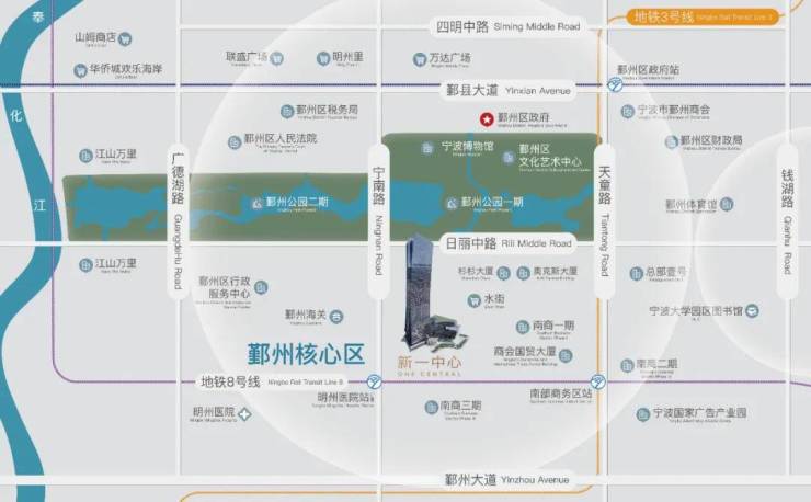 近邻地铁3#线和8#线(在建中),日丽中路、鄞州大道、天童南路、宁南南路两横两纵通达全城,驾车至高铁站和栎社机场均约20分钟左右(非高峰时段),交通便利无阻。