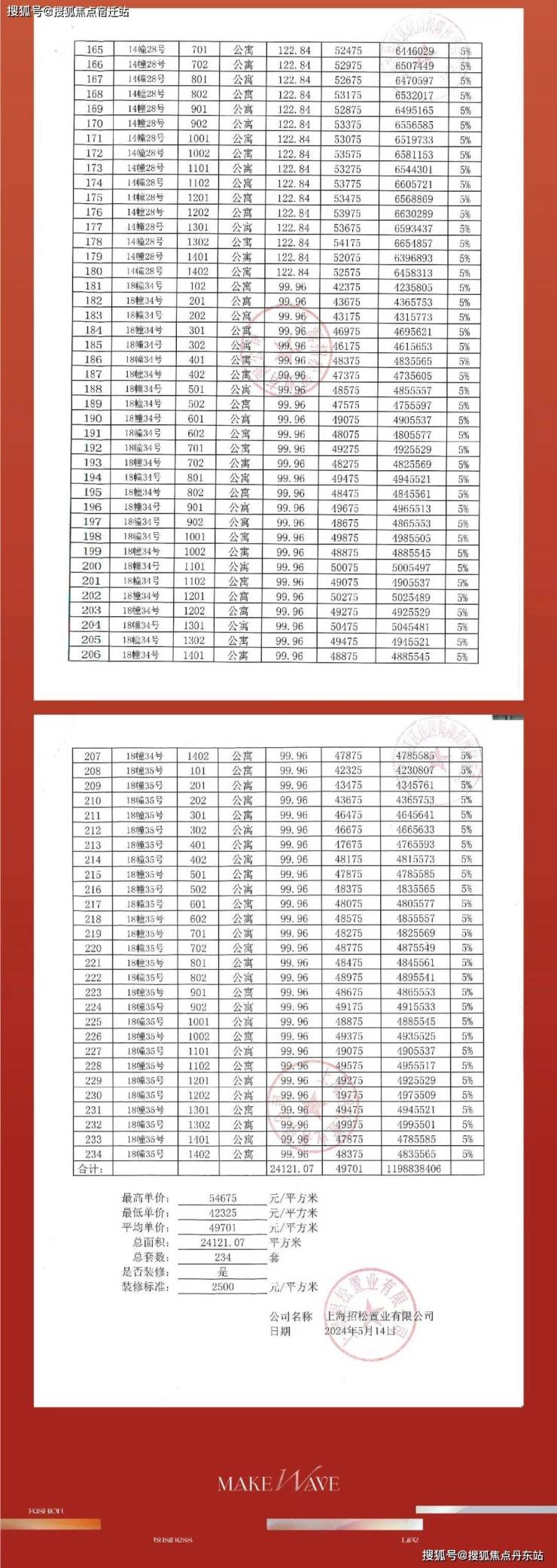 联动价5.11万/㎡ 装标2500/m²
