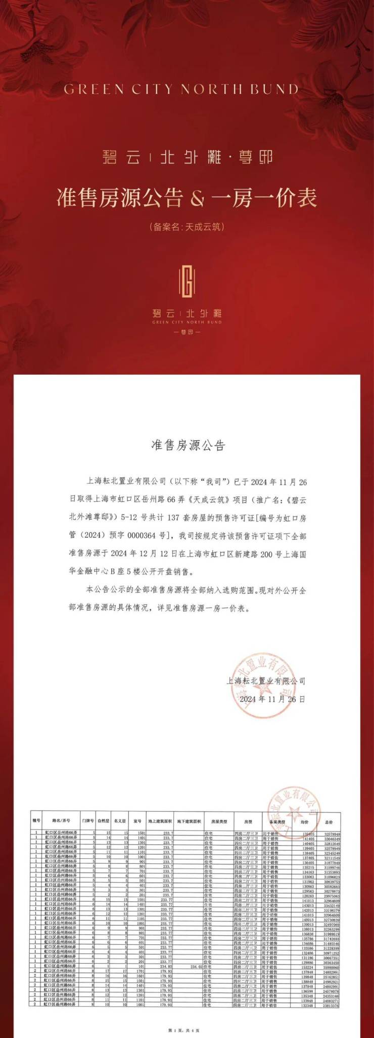 「碧云·北外滩」135街坊去年已正式开工,规划建设4栋高层公寓和1栋多层保障房,主力建面约180-230㎡大平层,房地联动价13万/㎡。