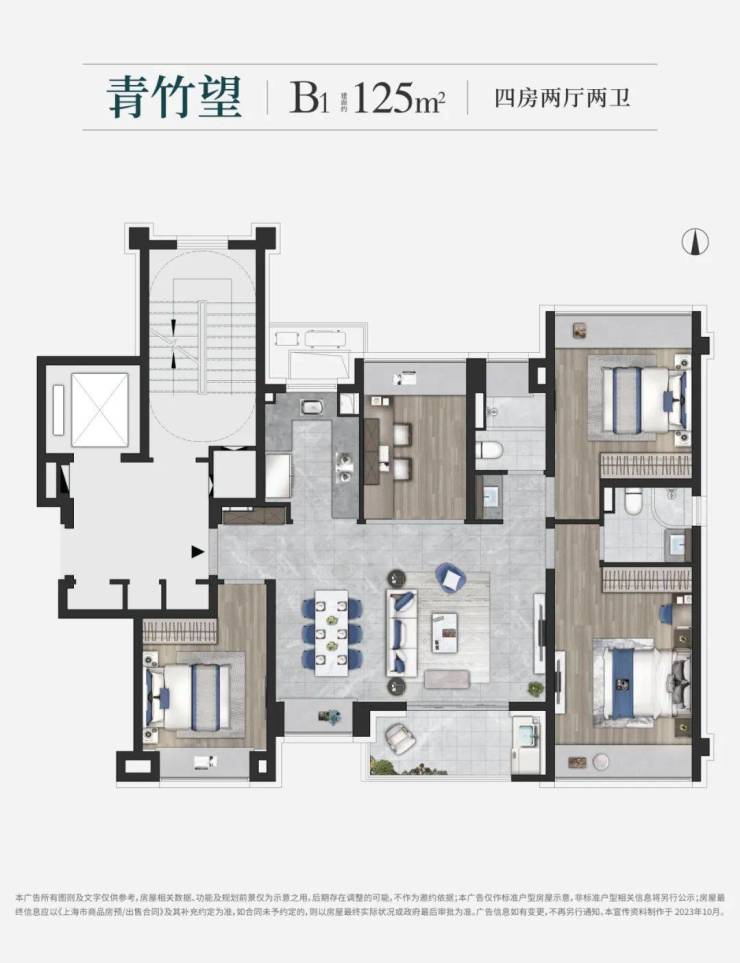 建面约125㎡的四房设计,在空间上使用功能更加扁平化,一站式解决了家庭生活的所有功能,优化居家动线,大大提升空间的居住体验。