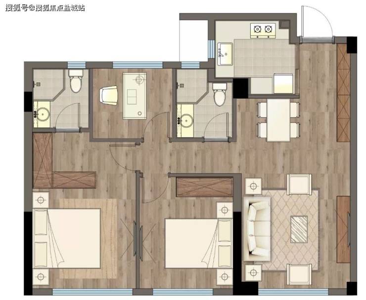 整体看下来,户型方正合理,基本没有浪费空间,再辅以贴心的收纳空间和超大的面宽尺度,居住的舒适感立马提升了一档。
