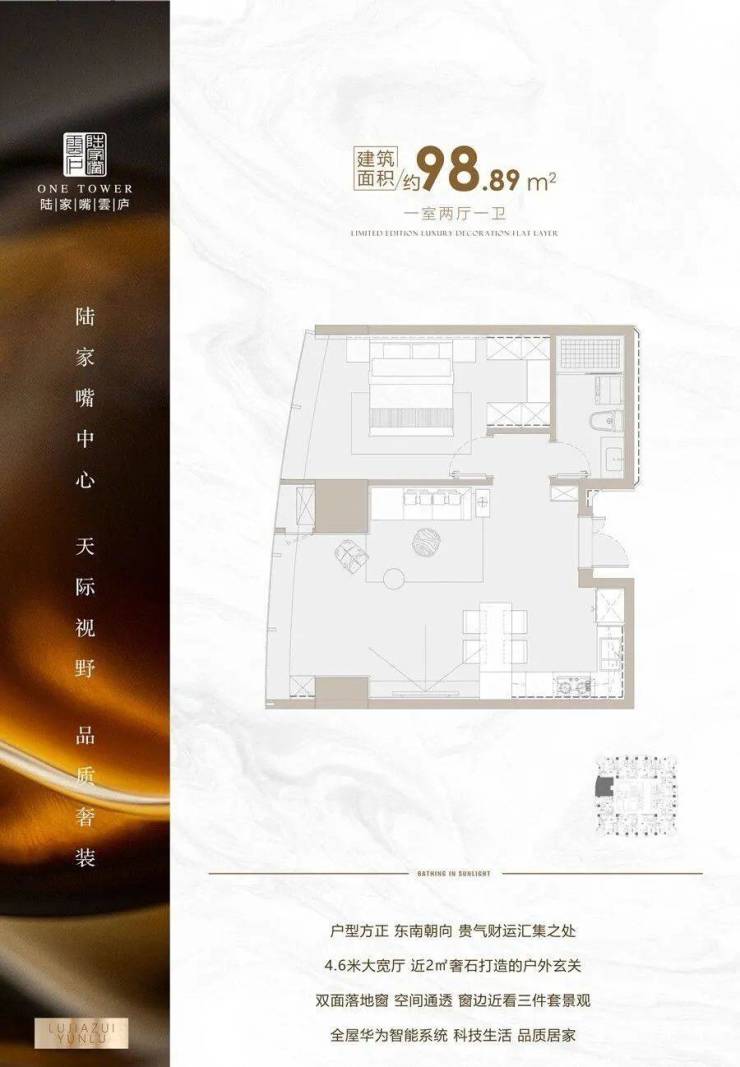 陆家嘴上海中心旁「陆家嘴·雲庐」不限购行政公馆,在售面积约98-131㎡1-2房,现有少量房源在售;总价7字头起拥内环内品质不动产,投资,自住皆宜。