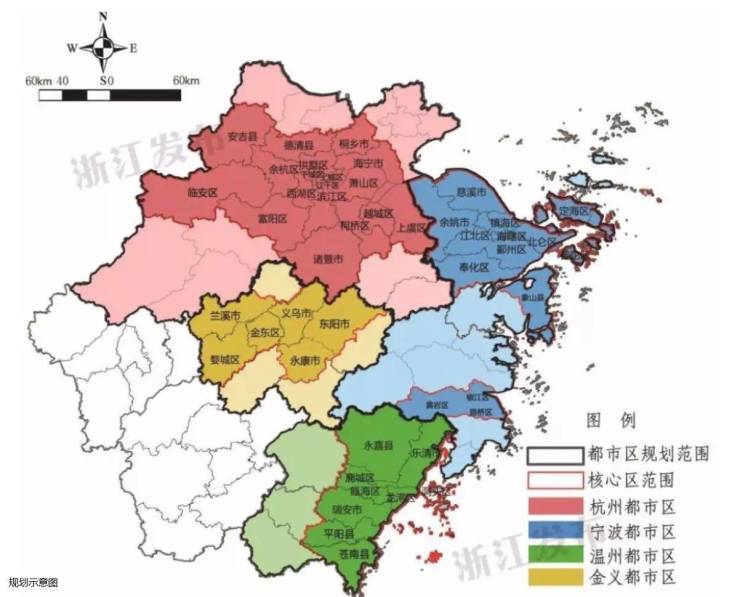 诸暨北承杭州南接义乌,是杭州都市圈和金华都市圈双核轴心位置;2019年浙江省委省政府对大都市区建设进行了系统谋划部署,其中诸暨被纳入“杭州都市区”的核心区。