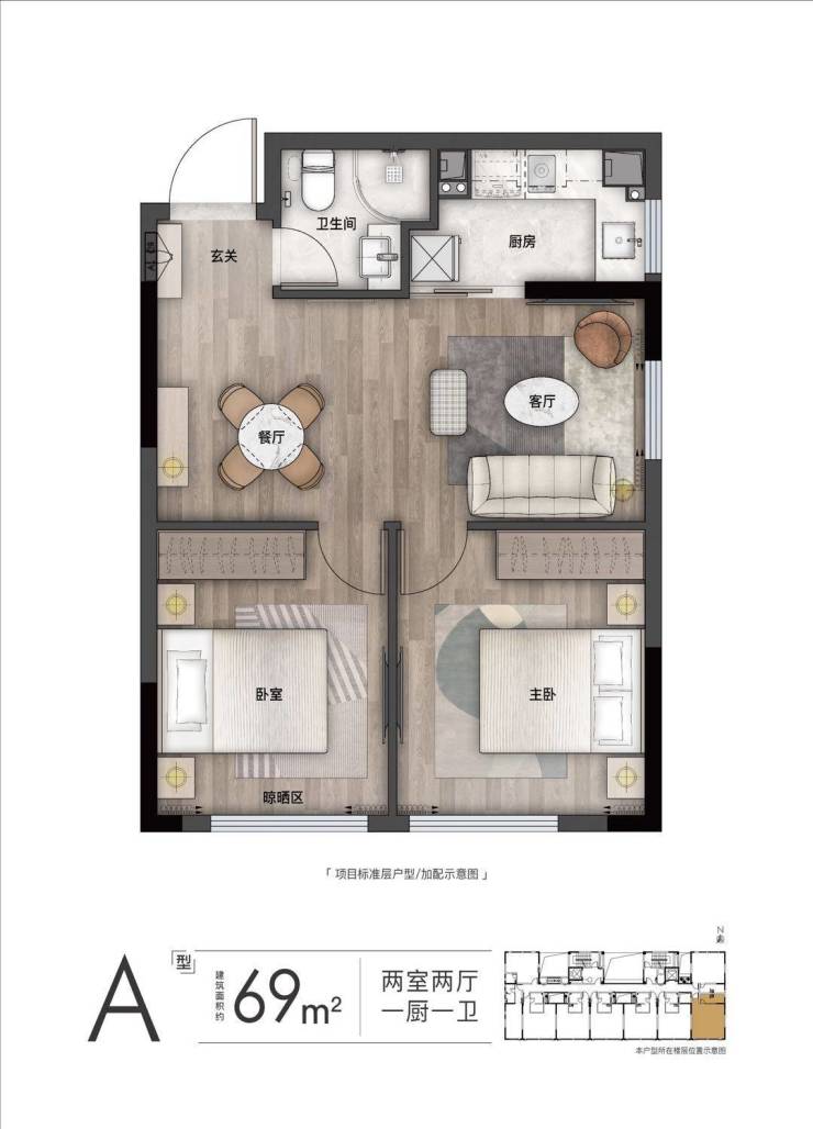 酒店公寓面积:约43-69㎡