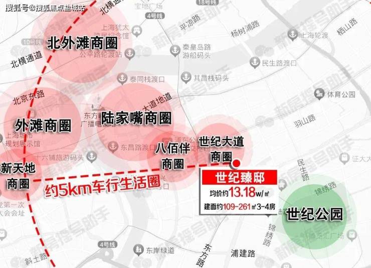 车行生活圈也是相当优越,【世纪臻邸】周边直线距离约5km范围涵盖陆家嘴、外滩、北外滩黄金三角顶层商圈以及新天地商圈。