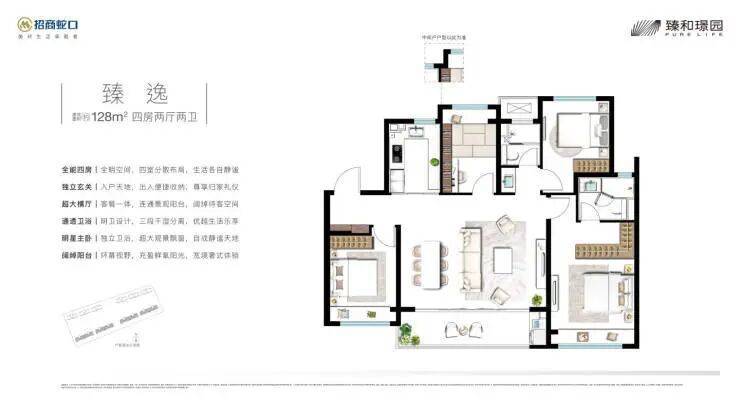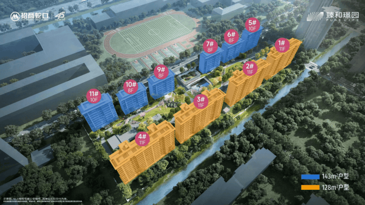 招商臻和璟园,项目容积率低至1.6,是目前板块内唯一纯洋房新盘,全盘仅270套房源,再加上全人车分流的贴心设计,最大程度保障了居住的舒适度与静谧感。打造8-11F洋房,容积率1.6,共270户,建面约128㎡、143㎡四房两厅两卫户型,总价约380万起。
