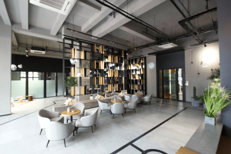 轻奢工业风大堂,书吧咖啡吧是打工人心灵休憩空间