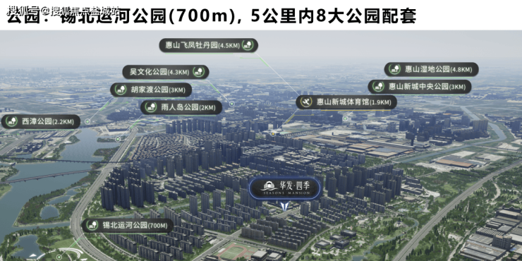 5公里内8大公园:雨人岛公园、胡家渡公园、惠山湿地公园、惠山新城中央公园、吴文化公园等作为生活后花园,是城市天然氧吧。