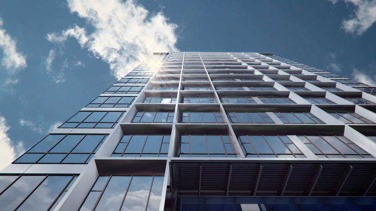 商务地标T-ONE天湾,打造同频国际的简约美学地标,整齐精密的蓝色玻璃方格,闪烁科技主义的理性光泽,辉映浙商企业领袖身份。