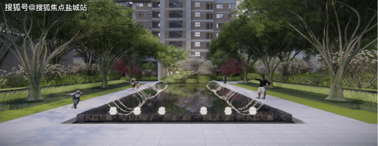 归家礼仪升级-打造小区主入口礼仪广场:入口后花园,是约20米跨度的礼仪广场,搭配迎宾树列、镜面水景跳泉、林下休憩空间,仿佛置身于私家花园;