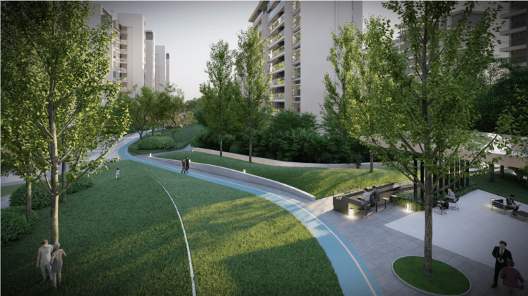约37%绿化率,约4500㎡中央景观,多条归家动线皆穿过主景观区,在自然中记录风光日常