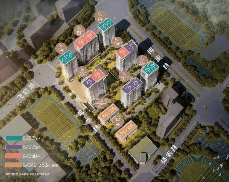 项目规划7幢18-22F高层住宅,户型面积约223-350㎡