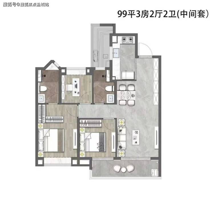 亮点:层高约3.1米,同类户型中做到南向更大的景观面,客厅和卧室外阳台打通,面宽约5米,不封阳台!厨房预留了双开门冰箱位置。
