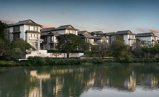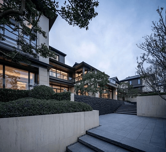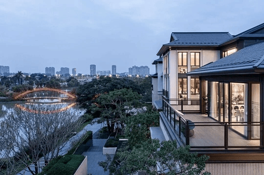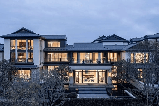 空间设计:注重室内外空间融合,前庭后院、温泉入户,地下层通过扩大采光井实现“全明空间”;入户空间延续大门、院门、宅门三进制式,强化礼序与私密性;部分户型庭院设有景亭、温泉等设施,营造“人文游憩式”生活场景。