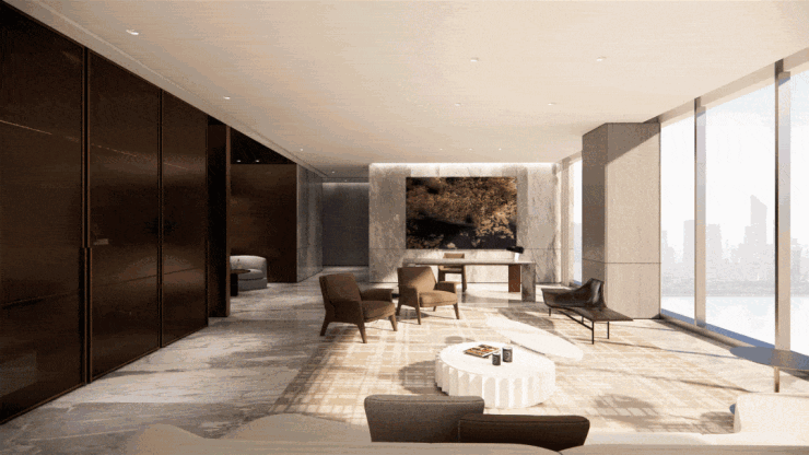 【望廷】阔厅江景宽景大宅,洞察塔尖精英心之所想,通过现代东方禅意美学的组合方式,以“东方艺术禅”为美学设计概念,将尊贵,私密,自然,精神滋养等理念贯穿所有空间,呈现出纯净高贵的意象之美。