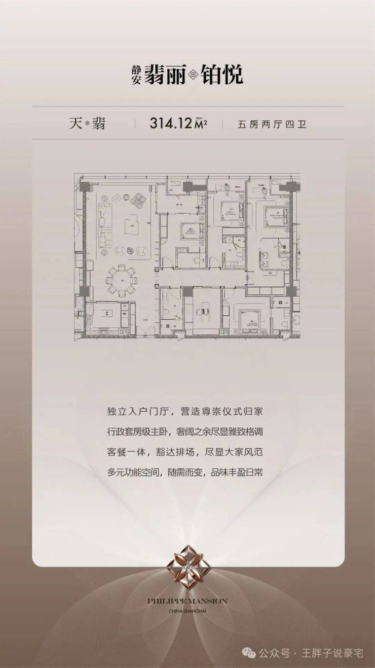 天翡户型:约314㎡|5房2厅4卫(独立入户+3套房)。
