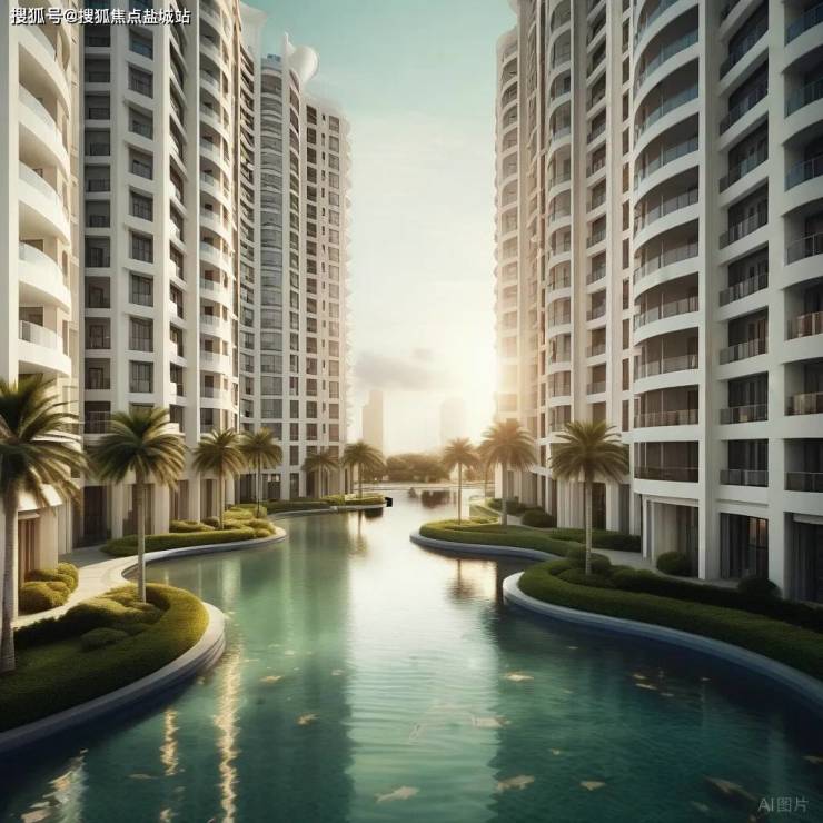 社区内每栋住宅的东、西、南三面皆以U型水系环绕,与住宅结合,寓意