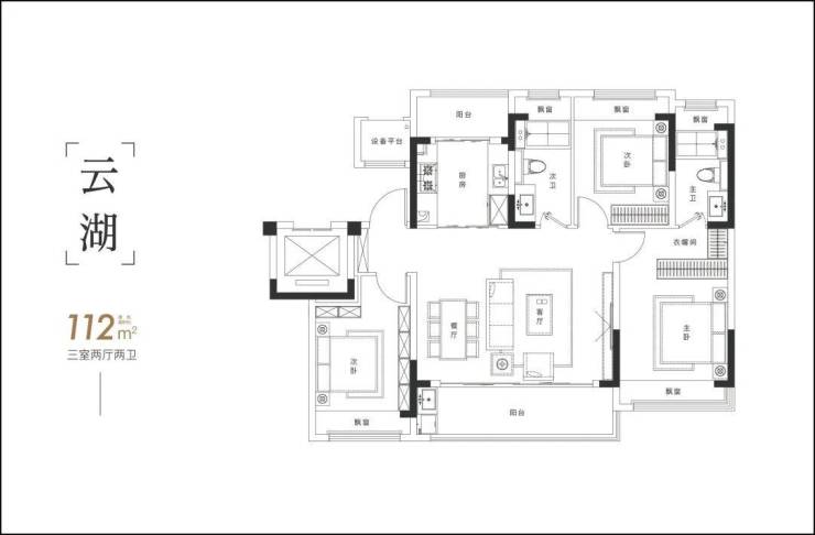 ▼建面约112㎡(三室两厅两卫):同样保留南北阳台和主卧套间的配置,270°阳台观景……更贴合现代人生活习惯的设计,完全可以实现初级改善。