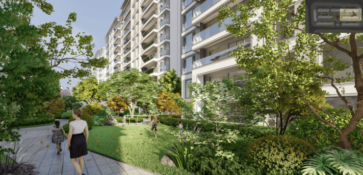 整体遵循现代简约的设计风格,约1600㎡中心景观,通过“双轴、双芯、多节点”的布局,打造真正的公园式住宅。